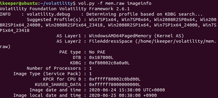 volatility로 운영체제를 분석한 결과는 'Win7SP1x64'다.