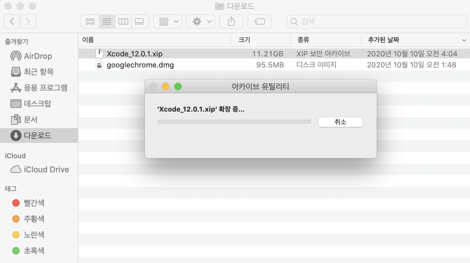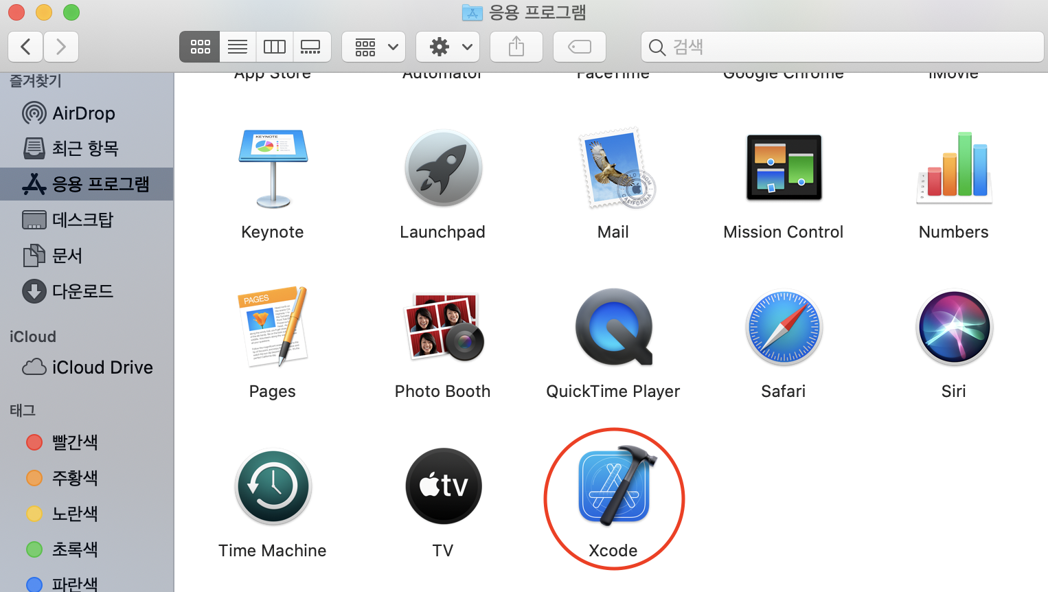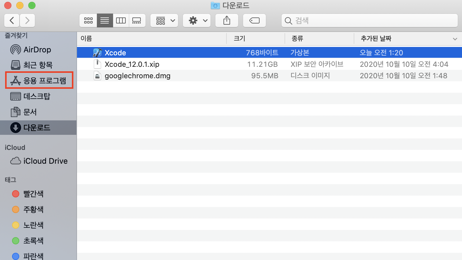 압축 해제가 되면 Xcode 파일을 응용 프로그램으로 이동한다.